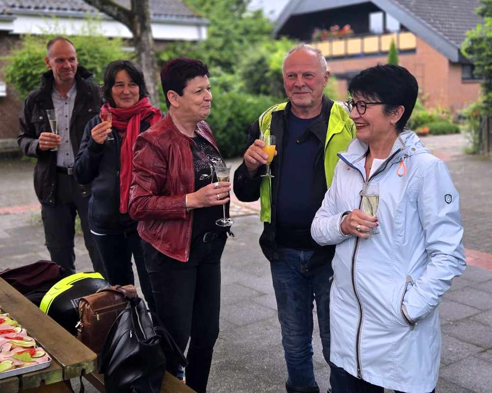 Am Nachmittag wurde Dagmar von ihrem Lebensgefährten und einem Freund abgeholt – begleitet von einem festlich organisierten Motorrad- und Autokorso mit Kolleg*innen, Per Carsten Meyer und Monika Ehlers. Ziel: ihr Zuhause, wo Familie und Freunde eine kleine Abschiedsfeier ausgerichtet hatten. Auch hier warteten persönliche Geschenke der Kolleginnen: ein Massagegutschein, ein Essen im Asado in Uelzen und ein Likör, den sie besonders mag.