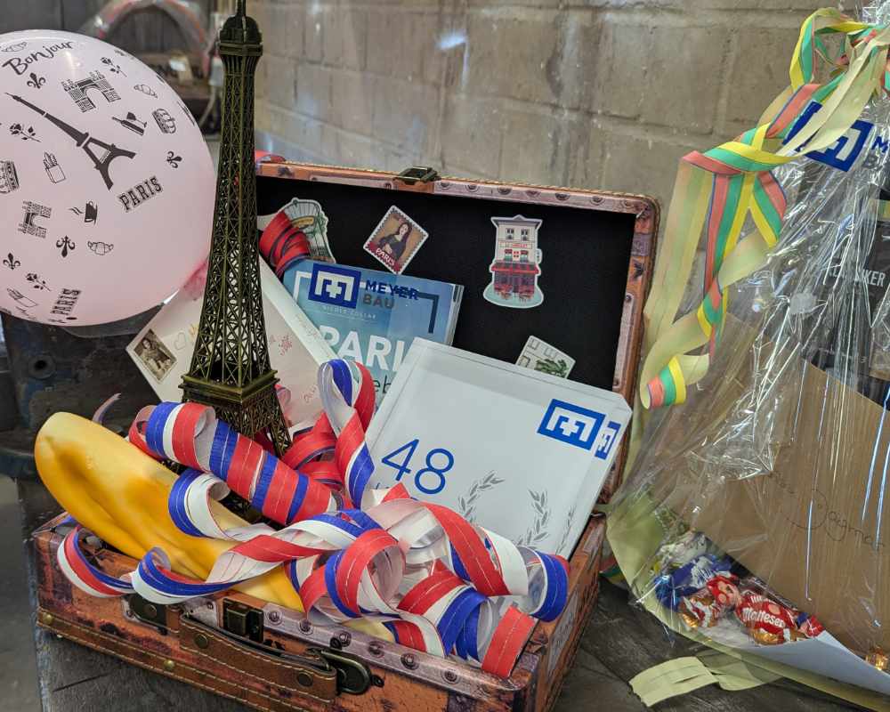 Ein besonderer Moment waren die herzlichen Worte von Per Carsten und Werner Meyer. In seiner Rede würdigte Per Carsten Meyer nicht nur ihre fachliche Kompetenz, sondern auch ihre Fähigkeit, als langjährige Betriebsratsvorsitzende stets die Balance zwischen den Interessen der Mitarbeitenden und den Belangen des Unternehmens zu halten. Eine Stärke, die er besonders hervorhob: „Sie hat sich immer für beide Seiten verantwortlich gefühlt – das war besonders und sehr wertvoll.“ Im Namen der gesamten Geschäftsführung überreichte er Dagmar Brunhöver ihr Abschiedsgeschenk: eine Reise nach Paris – als Anerkennung für die jahrzehntelange Treue, das Engagement und den großen Beitrag, den Dagmar Brunhöver für das Unternehmen geleistet hat. Er verriet auch, dass er und Dagmar nun nach jahrelanger Zusammenarbeit zum „Du“ übergehen. Sie hätten sich einmal gesagt, dass sie sich, solange sie zusammenarbeiten, immer siezen werden.