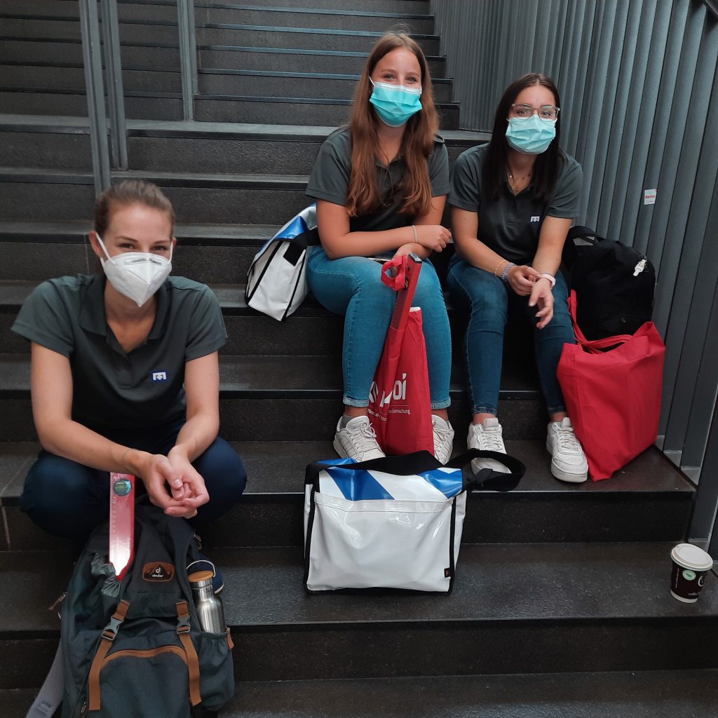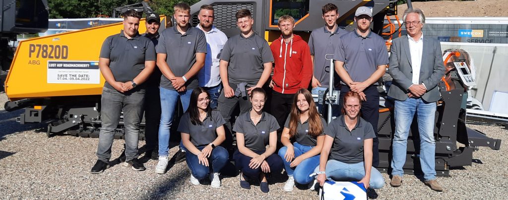 Also machte sich natürlich auch der „Meyer Nachwuchs“ auf den Weg nach Neumünster, um den Ruf unseres Familienunternehmen zu verteidigen. Zusammen mit Sabrina Schröder, Vera Becker (beide Personalabteilung) und Tiefbau-Geschäftsführer Jens-Peter Carstens traten Lena Geiger, Rebekka Busse, Daniel Kaupke, Benjamin Cohrs, Tim Lobstaedt, Finn Winkelmann, Luca Bühring, Mike Mücke, Delil Tarhan und Projekt-Organisator sowie Azubi Tobias Panthen die Reise an. Nach der Ankunft und den obligatorischen Corona-Tests, erkundeten die 10 Azubis in kleinen Gruppen die Messe, in der Aussteller aus 15 Ländern ihre Produkte und Dienstleistungen vorstellen. Nach einer kleinen Stärkung um die Mittagszeit wurde es dann Ernst. In einem theoretischen Teil mussten unsere Azubis zuerst 20 Fragen rund um das Thema Baumaschinen und deren rechtliche Grundlagen korrekt beantworten. Danach folgten die Prüfungen an zwei Baumaschinen-Simulatoren.