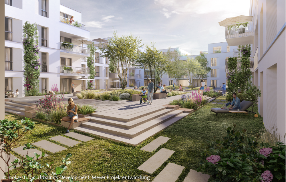 Weitere technisch anspruchsvolle Features sind Sicherheitstreppenhäuser inkl. Rauchdruckanlagen und eine gesprinklerte Tiefgarage mit vier Split-Leveln und mehr als 250 Plätzen. Die begrünten Innenhof-Fassaden und Lademöglichkeiten für Elektromobilität runden dieses nachhaltige Bauvorhaben ab. Tobias Müller, unser Geschäftsführer der Meyer Projektentwicklung, bringt es auf den Punkt: „‘The Plus‘ ist nicht nur ein nachhaltiges, wegweisendes und höchst anspruchsvolles Projekt für die Steimker Gärten sowie die Meyer Projektentwicklung, sondern auch ein großer Schritt – mit grünem Fußabdruck – Richtung Zukunft für unsere gesamte Unternehmensgruppe“. Der Bauantrag für „The Plus“ soll Anfang 2022 gestellt werden.