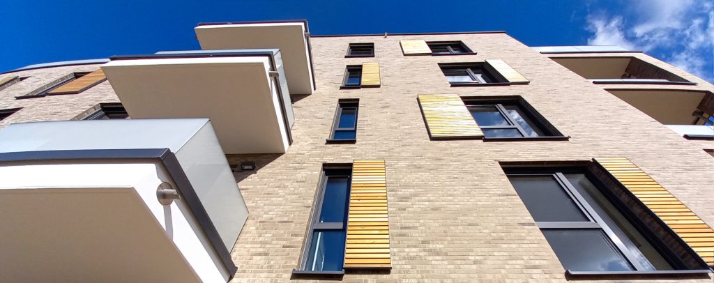 Nachdem unsere Hochbau-Profis von 2018 bis 2020 das „Steimker Quartett“ mit 73 Wohneinheiten für die Meyer Projektentwicklung errichtet haben, begann im Frühjahr vor zwei Jahren der Bau des „Steimker Duett“. Auf einem Grundstück von rund 2.730 m² entstand mit dem „Steimker Duett“ ein Ensemble aus zwei harmonierenden Gebäuden mit hochwertigen Klinkerriemchen, Sichtkanten in Betonoptik und Fassadenelementen aus Holz. Die zwei Häuser verfügen über 38 Wohneinheiten in einer Größe von etwa 68 m² bis 160 m², verteilt auf vier Vollgeschosse und ein Staffelgeschoss sowie eine gemeinsame Tiefgarage mit insgesamt 52 Stellplätzen, vier davon sind rollstuhlgerecht. Die großzügigen und durchdachten Grundrisse sind offen und dabei klar strukturiert. Die überwiegend bodentiefen Fenster sowie Balkone, Loggien oder Dachterrassen verleihen den Wohnungen ein großzügiges Raumgefühl.