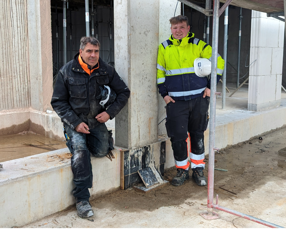 „Es ist toll andere Leute zu treffen, ein anderes Land zu entdecken und zu lernen, wie hier gearbeitet wird“, erzählte Jøran. Betreut wurde er während seines Baustellen-Praktikums von Karsten Eggers. Da Jøran kein Deutsch spricht, unterhalten sich die beiden auf Englisch „Das klappt alles sehr gut. Wir haben Spaß bei der Arbeit und Jøran sieht die Arbeit. Er hilft schon ordentlich mit. Wir haben z.B. Stützen betoniert und Filigranplatten verlegt. Er weiß, wie es geht und man merkt, dass er bereits eine handwerkliche Grundausbildung hat“, erklärte Karsten Eggers. Die norwegische Handwerksausbildung unterscheidet sich vom dualen System in Deutschland. Künftige norwegische Gesellen besuchen zuerst für zwei Jahre die Berufsschule, die neben dem theoretischen Unterricht aus vielen praktischen Lehrgängen besteht, vergleichbar mit den Lehrgängen im Bau-ABC Rostrup, die unsere Azubis besuchen. Norwegische Azubis können sich im ersten Jahr in den unterschiedlichen Gewerken versuchen und Praktika in verschiedenen Betrieben absolvieren. Im zweiten Jahr spezialisieren sie sich. Erst danach erfolgt die ein- bis zweijährige betriebliche Ausbildung. „Ich würde mich freuen, wenn wir wieder einen Praktikanten aus dem Ausland nehmen. Ich denke, das ist eine tolle Erfahrung für die jungen Leute, bei der sie eine Menge lernen können. Jøran hat mich auch nicht bei der Arbeit behindert, sondern ordentlich mit angepackt“, zeigte sich Karsten Eggers stolz auf seinen Schützling. Neben der Arbeit auf der Baustelle, besuchte Jøran auch unsere Unternehmenszentrale in Uelzen, wo er durch die Werkstatt und das Verwaltungsgebäude geführt wurde und unseren Hochbau-Geschäftsführer Michael Bombeck kennenlernte.