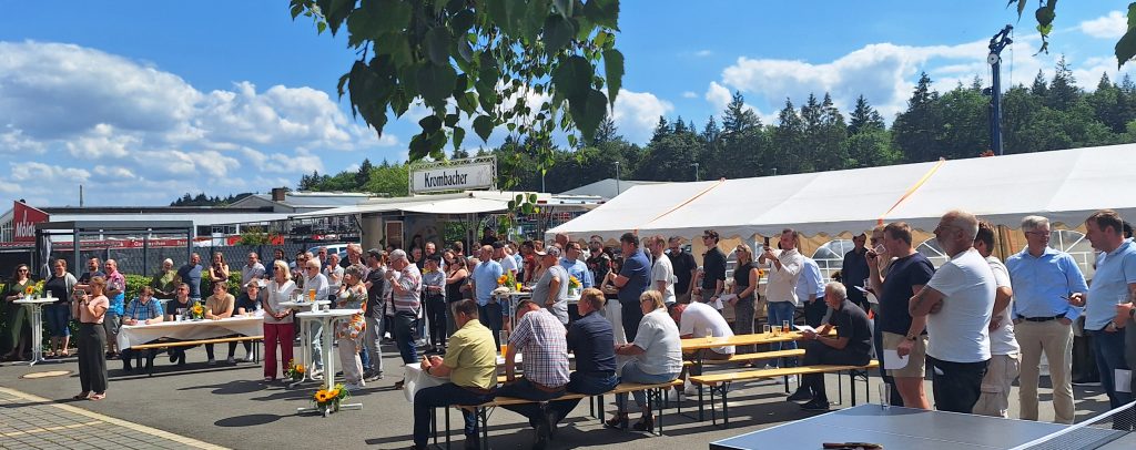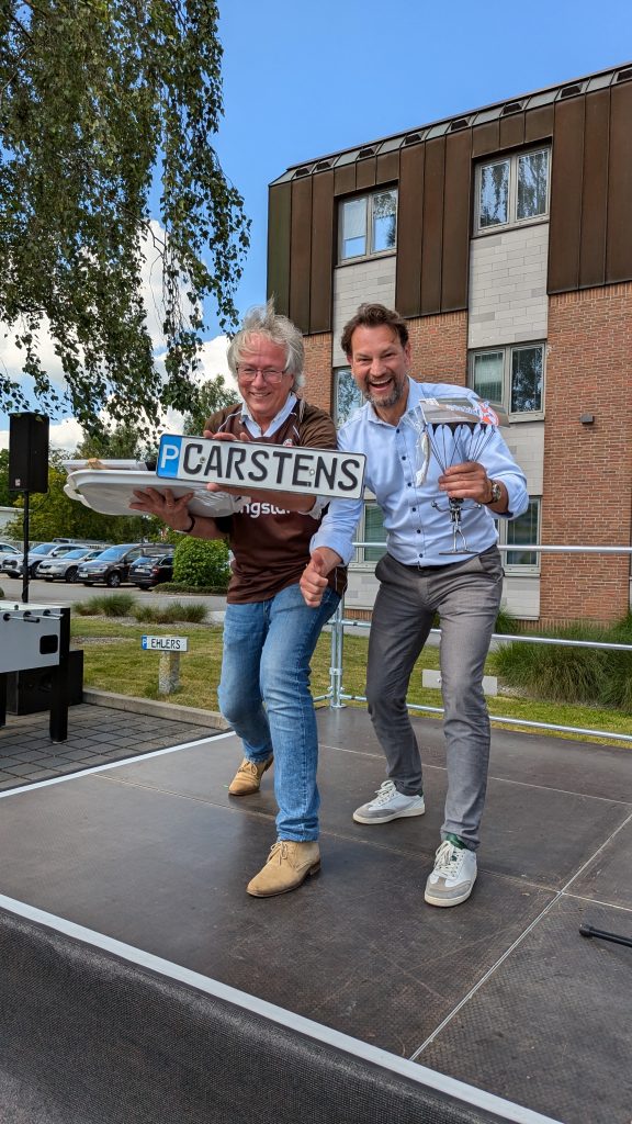 Eine rundum gelungene Sache war am vergangenen Freitag unser Sommerfest. 159 Kolleg*innen sind dazu auf den Uelzener Betriebshof gekommen und genossen bei bestem Wetter ein tolles Grillbüfett, gute Musik und das ein oder andere Kaltgetränk. Zwei Kickertische und eine Tischtennisplatte sorgten für jede Menge Spaß. Ein besonderer Moment war die Verabschiedung von unserem Tiefbau-Geschäftsführer Jens-Peter Carstens in den Ruhestand. Zum Abschied erhielt er einen Fallschirmsprung, ein Trikot seines FC St. Pauli, einen Rollkragenpullover (da er mal gesagt hat, dass nur einen besitzt) sowie Farben, Pinsel und Leinwände, weil er sich jetzt gerne dem Malen widmen möchte.