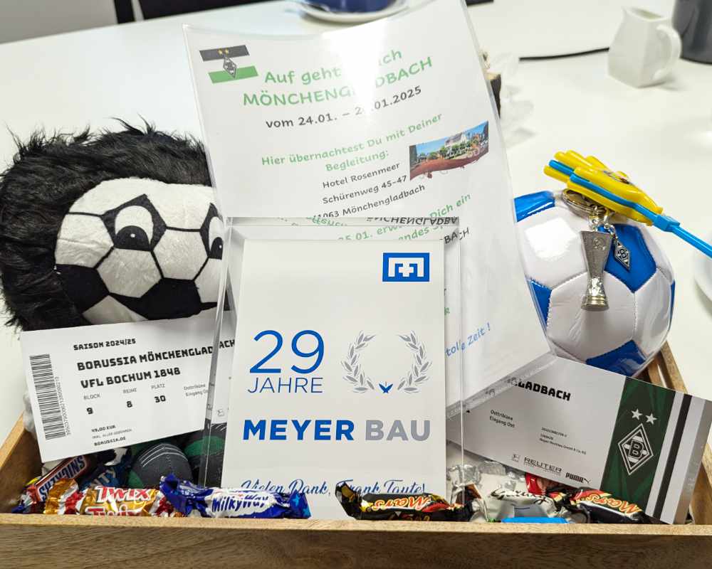 Zum Abschied gab es nicht nur herzliche Worte, sondern auch ein besonderes Geschenk. Da Frank Taute ein großer Fußballfan ist und seinem Lieblingsverein Borussia Mönchengladbach die Daumen drückt, wurde ihm eine Reise zu einem Heimspiel der „Fohlen“ gegen den VfL Bochum am 25. Januar 2025 geschenkt. Zusammen mit einer Begleitung wird er für drei Tage nach Mönchengladbach reisen und dabei nicht nur das Spiel live erleben, sondern auch zwei Übernachtungen in einem Hotel genießen können. „Du kannst dir außerdem aussuchen, ob du mit dem Auto fährst und wir dir etwas dazuschießen oder ob du mit der Bahn fährst und die Zugtickets bekommst“, ergänzte Frank Widdecke.