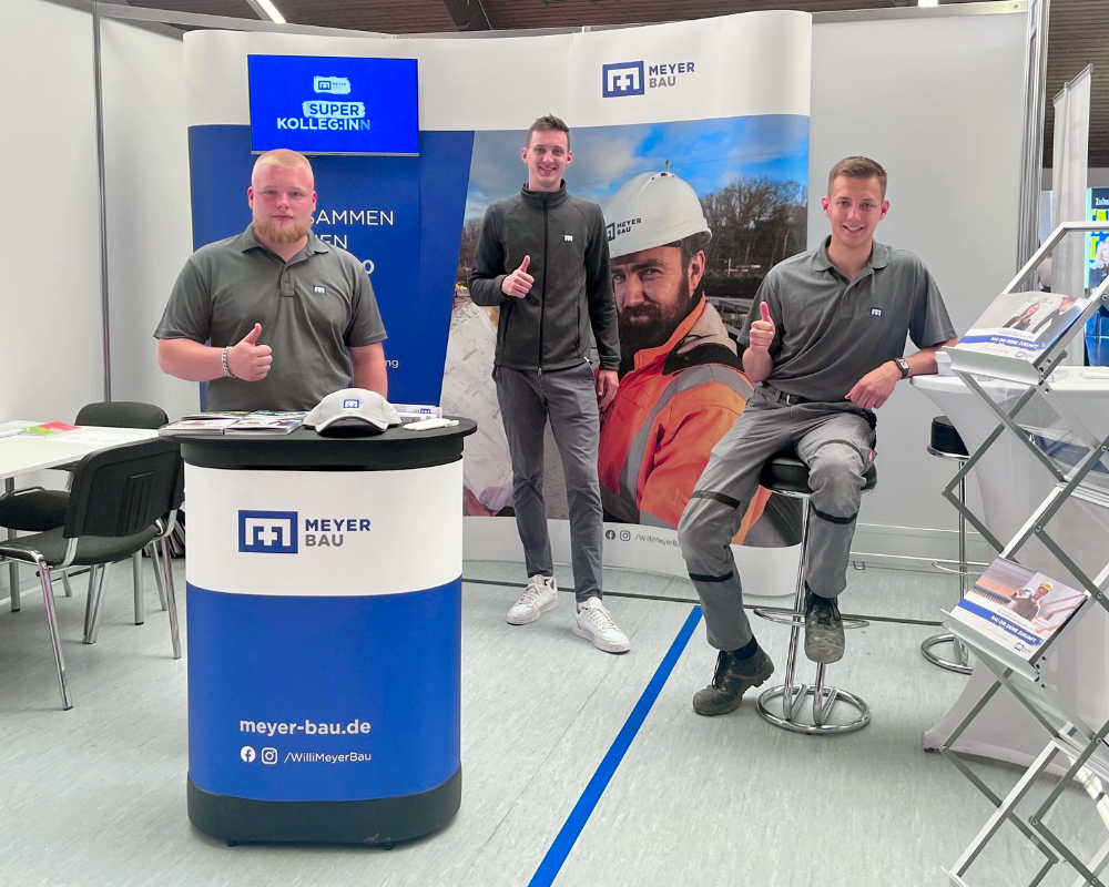 Bereits vorab hatten sich 40 Interessierte zu einem persönlichen Gespräch bei unseren Kollegen aus der Personalabteilung, Tobias Panthen und Birgit Kielisch, sowie unseren Auszubildenden Max-Fabian Höbermann (Ausbildung zum Straßenbauer) und Simon Schmidt (Ausbildung zum Maurer) angemeldet. Etwa 30 der Interessierten erschienen dann auch zu ihrem angemeldeten Gespräch. Hinzu kamen diverse spontane Messegespräche. Besonders die persönlichen Erfahrungen unserer Azubis vermittelten einen guten Einblick in die Ausbildung bei uns. „Max und Simon haben das echt klasse gemacht und ich nehme sie gerne wieder mit“, lobte Tobias Panthen das Engagement der beiden. Besonders häufig wurden unsere Kolleg*innen nach den typischen Tätigkeiten der verschiedenen Berufe, die es in unserem Unternehmen gibt, gefragt sowie nach dem Aufbau der Ausbildung, Weiterbildungsmöglichkeiten und nach allgemeinen Informationen rund um unser Familienunternehmen. „Wie groß das Interesse der Jugendlichen an uns dann wirklich ist, werden wir am Bewerbungseingang für den Ausbildungsstart 2024 sehen“, erklärt Tobias Panthen und ergänzt: „Auch der Austausch mit den anderen Ausstellern auf Berufs- und Ausbildungsmessen ist gewinnbringend für uns. Hier bekommt man auch Ansätze und Ideen, wie wir unser Ausbildungsportfolio weiter ausbauen können.“