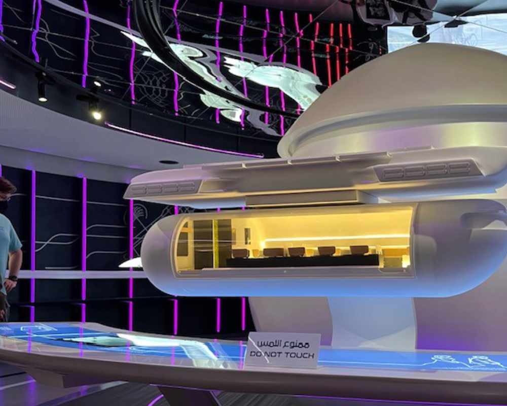 In einem eigenen Pavillon der DP World Cargo wurde ein innovatives Verkehrssystem vorgestellt, das in naher Zukunft in der arabischen Welt realisiert werden soll. In einer Röhre mit einem Durchmesser, der weltweit einheitlich sein soll, werden Behälter für Güter und Menschen mit hoher Geschwindigkeit nach dem Prinzip der Magnetschwebebahn transportiert. In der Vision der Emirate sollen Güter aus China im Hafen von Dubai umgeschlagen werden und dann mit diesem neuen Transport-System durch Saudi-Arabien und die Türkei nach Europa transportiert werden können. Auf diese Weise werden die Straße von Hormus und der Suezkanal umgangen und so die Transportzeit von China nach Europa erheblich verkürzt.